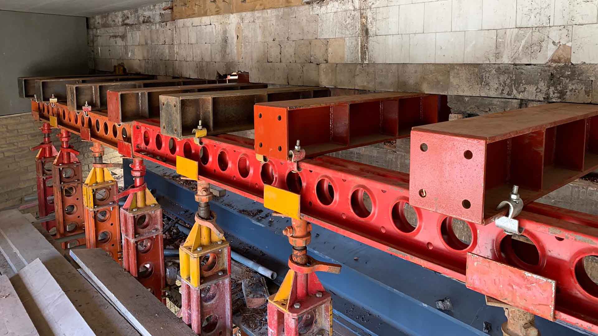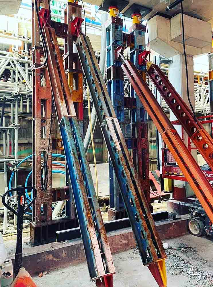 We offer a complete propping and jacking solution from concept design to installation, including specialist synchronised computer control with electronic monitoring jacking equipment which enables us to provide precise and uniform lifting or lowering operations with relative ease. All our systems are modular and can be supplied with a multitude of accessories such as, adaptor plates, diagonal bracing brackets, adjustable levelling bases, rocker bearing heads, jacking adaptors and spreader or needling beams of various lengths all available for hire at competitive rates throughout the UK.